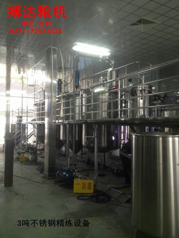 大豆油精煉設備熱脫皮工藝,今年來(lái),大豆油熱脫皮工藝得到較快的發(fā)展和推廣,大豆油熱脫皮紅衣的形式很多,經(jīng)過(guò)處理后的大豆直接進(jìn)入流化床加熱干燥,使表面溫度達到75-92攝氏度,大豆所含水分9%左右,這主要是為了加熱大豆皮和表層,皮松脆易于裂開(kāi)。然后由輥破碎機將大豆對半破開(kāi)分為兩瓣,并落入撞擊機利用撞擊機作用使豆皮從仁粒上松脫下來(lái),經(jīng)吸風(fēng)分離器進(jìn)行脫皮分離,經(jīng)部分脫皮的半粒狀大豆再經(jīng)過(guò)齒輥破碎機破碎成符合軋坯要求的粒度,而后又經(jīng)撞擊機和多級撞擊和多級吸風(fēng)分離器進(jìn)行第二次脫皮分離,分離出的豆仁至下道工序,豆皮收集后送至豆皮倉庫,該工藝與冷脫皮工藝相比周期短,短時(shí)間的高溫處理減少了大豆油中油脂的變質(zhì)和蛋白質(zhì)的變性。熱大豆破碎后的粉末度減小,這將更有利于皮仁的分離,減少皮中的含仁量。經(jīng)脫皮后的熱豆??芍苯舆M(jìn)行軋坯,或為加熱軟化后再去軋坯,這將大大降低生產(chǎn)過(guò)程中的蒸汽消耗。